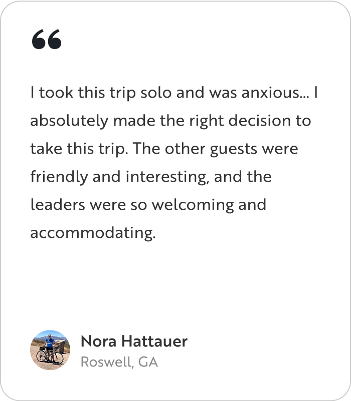 Maybe! Sometimes there are many solo travelers, sometimes just a few—every trip is unique. What’s consistent is that Backroads attracts people who are friendly, adventurous and excited to share the journey. Whether you join as a solo, a couple or with friends, you’ll be in good company with like-minded travelers. Want to know more about a specific departure? Our Trip Consultants can give you a sense of who’s signed up. Chat with us online or call 800-462-2848.