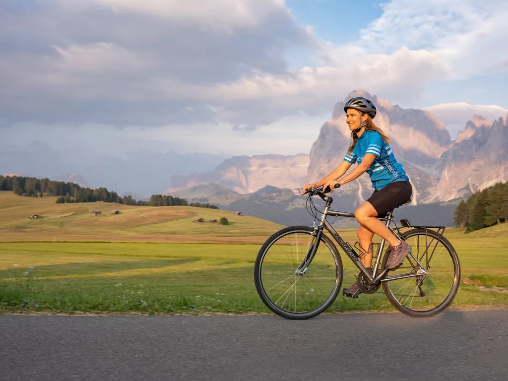 It’s love at first sight when your family catches a glimpse of the imposing Schlern massif and the mountain landscape of the Dolomites • Ride a cable car to Seceda, gateway to the sky-high mountaintops of the Puez Odle Nature Park, a World Heritage Site • Hike through picture-perfect alpine meadows surrounded by the peaks of the Geisler Group • Linger over a cold post-hike birra on the terrace of a typical mountain hütte • Bike among the meadows and forests of the Seiser Alm as you make your way back down to the storybook village of Selva in Val Gardena • Indulge at the spa or soak up alpenglow while sipping an aperitivo with your crew on the terrace of our resplendent hotel • Dine on Michelin-starred regional cuisine.