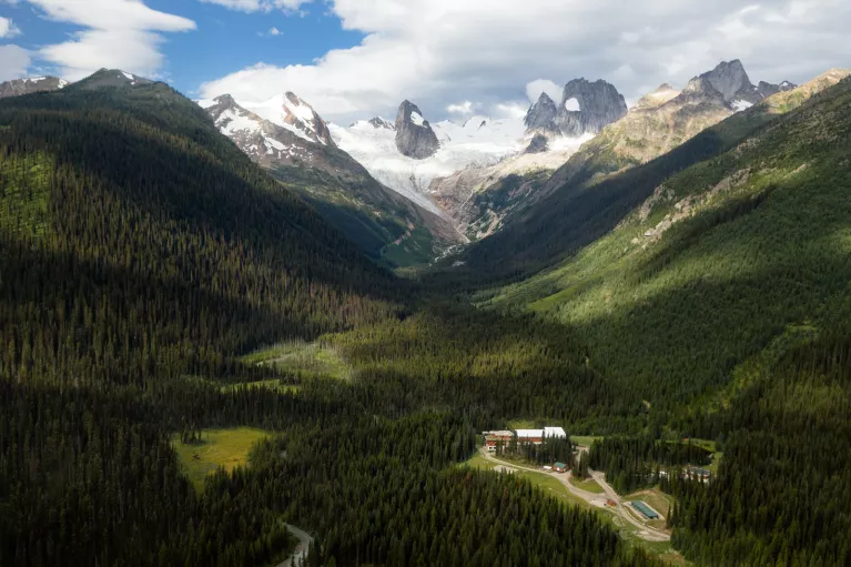 Embark on an exhilarating helicopter flight to our lodge • Soar to access some of the world’s most picturesque mountains—unspoiled spectacular landscapes of jewel-colored lakes, wildflower-strewn meadows and glistening glaciers • As you hike, cross ridgelines weaving up and down through cirques and hanging valleys • Savor fresh flavors from around the world at our charming alpine retreat • Relish endless views of the surrounding peaks and glaciers • Perhaps trek on a glacier or climb a via ferrata near the towering granite cathedrals of the Bugaboo spires • Get cozy in the lodge and step out for unforgettable stargazing • Set out for historic Kootenay National Park, following the storied Highway 93 South through British Columbia's rugged wilderness • Explore the geological wonder of Marble Canyon • Listen to the roar of Tokumm Creek crashing below • Enjoy a quiet hike along the Kootenay River, taking in sweeping vistas.