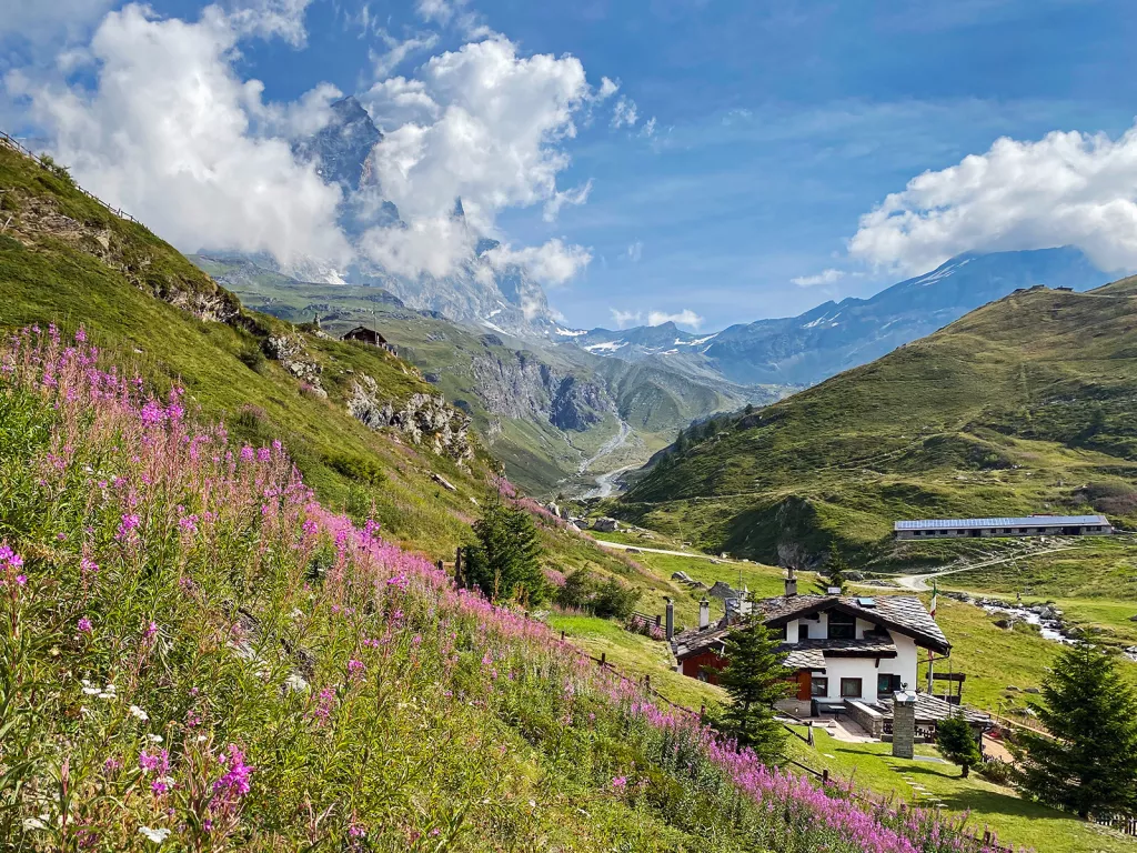 Meet in Turin, Piedmont’s elegant capital and our dazzling gateway city, where baroque palaces, chic piazzas and grand boulevards set the scene • Ride an all-terrain vehicle to our trailhead at Piani di Verra • Hike rugged mountain trails with sweeping views of glaciers and the mighty Monte Rosa range • Savor hearty Italian mountain fare and house-made gelato at a family-run Alpine refugio, then step into its spring-cooled cheese cellar for a glimpse of centuries-old tradition • From your chalet room—once part of an ancient Walser village—watch alpenglow transform the cliffs into hues of pink and gold.