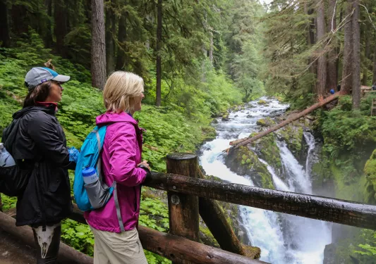 Journey to Olympic National Park for a hike through temperate rain forest to a scenic waterfall • Follow a trail along a flowing creek through old growth forest • Settle in at our historic lodge tucked away in a spruce and hemlock forest on the shore of Lake Crescent • Explore the lush Sol Duc River Valley and its namesake waterfall, a unique and beloved local attraction • Spend the afternoon as you please at our lakeside lodge, whether lounging on the sunporch or diving into glacially carved Lake Crescent.