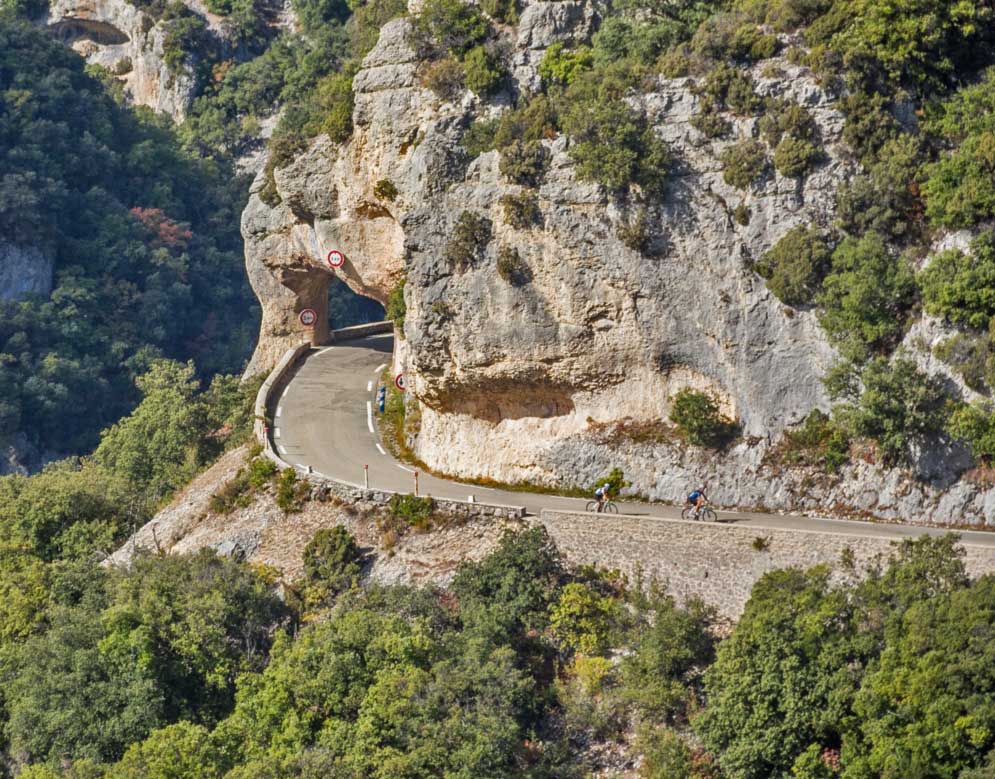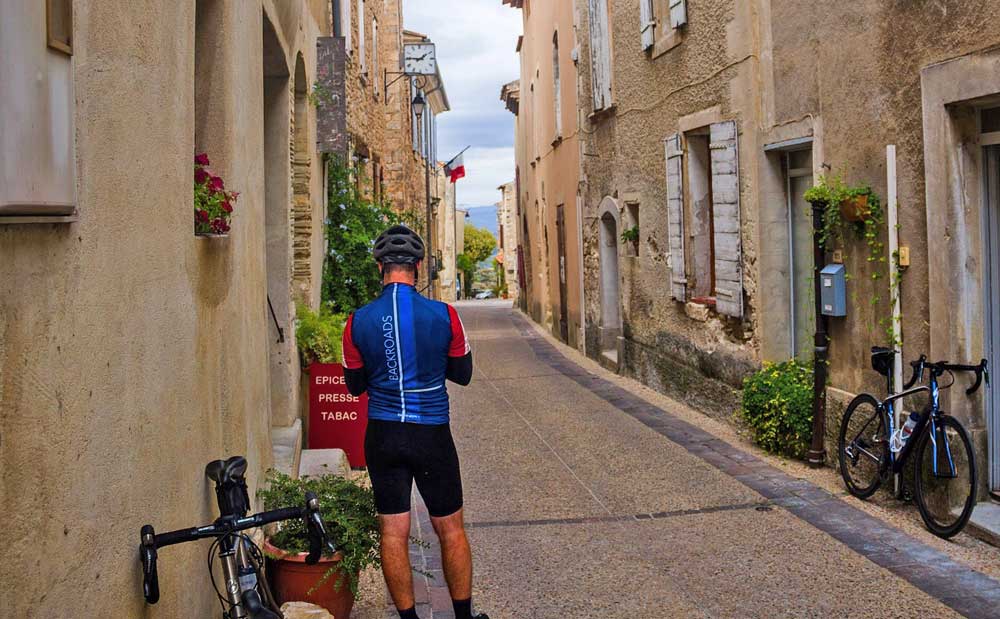 While it was great to be in the office and to enjoy the company of so many new and friendly faces, my favorite memories from Provence come from my time on a bike. On my second day in the office, my host for the week took me on a beautiful ride along quiet country roads up to the perched village of Venasque. After making the customary coffee stop that our Classic Luberon to Secret Provence trip enjoys, we relished the stunning views of Mt. Ventoux before enjoying a thrilling downhill back to the office. As the week went along, I was slowly convinced by my new friends to take on one of the most iconic rides in the region, Gorges de la Nesque. Setting out just before sunrise on my last day in town, I made my way along rural roads, passing by ancient farmhouses and foggy fields complete with woolly sheep. On a whim, I took a detour north towards Crillon-le-Brave, the tiny hilltop town home to the world-class Hotel Crillon le Brave, one of Backroad's longest-standing partners. Upon reaching the end of the spiraling climb up to the town square, I relished a quiet moment of victory as a nearby church tolled nine o'clock.
