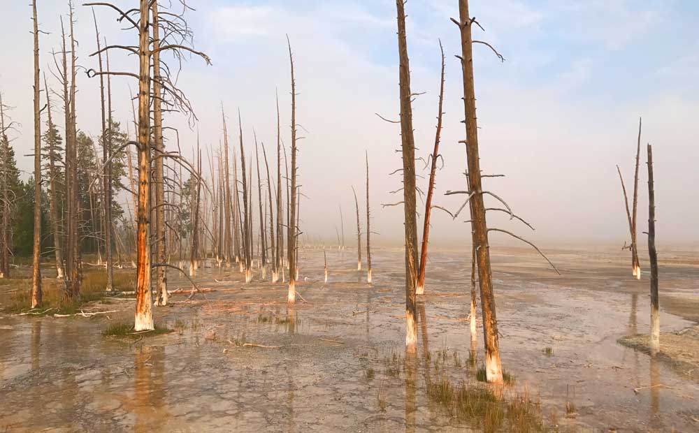 One thing we've noticed is that crowds don't seem to care for mornings all that much. As a matter of fact, they don't do mornings at all. Yellowstone sits on top of the world's largest active super-volcano and while its geothermal features are awesome to begin with... they're even more incredible to witness as the sun is rising into the sky and fog is rising off the ground! There are few things in this life more other-worldly than experiencing these hot spots in action during the morning hours without a lot of other people around. And it's not so much the voices and footsteps you may hear at this time of day, it's the incredible sizzle of red-hot water hissing from the earth just begging to be released. As an added bonus, setting out into the wilderness early tends to give you an even better possibility of seeing some amazing wildlife. For instance, when there are no people in sight, bison love to make their way near to the thermal features of Yellowstone in the morning for their own kind of mornin' cup of joe. The tranquility and peace you can find in the morning in a national park is something that will stay with you for a long time.