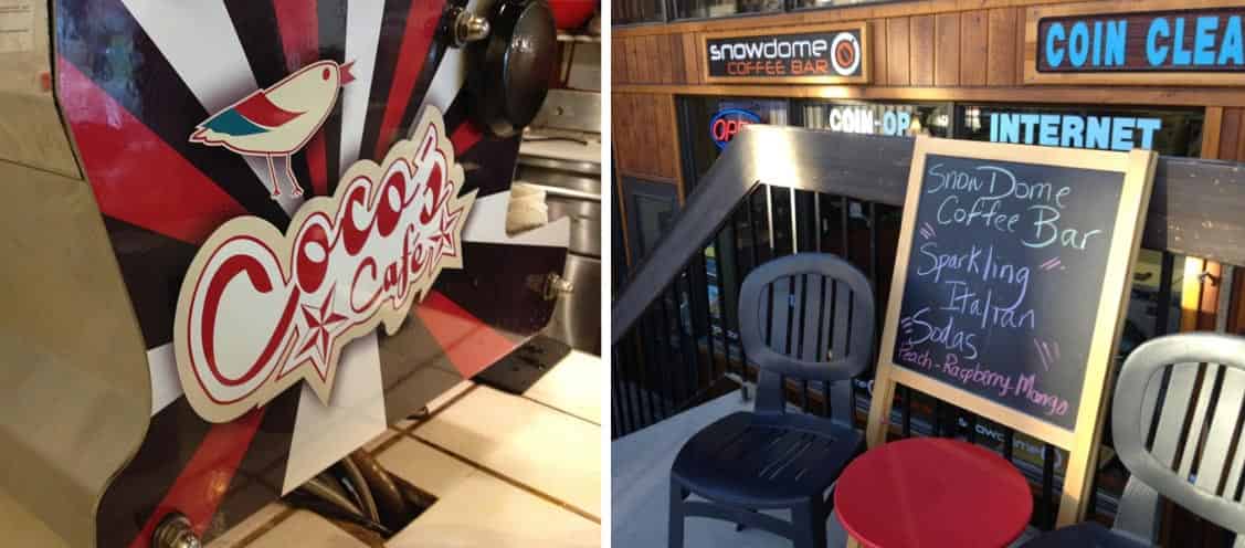 Nestled into the pines that run along the Athabasca River just one mile outside of Jasper, Tekarra Restaurant at the Tekarra Lodge has been a mainstay of both the Jasper culinary experience and the Canadian food scene since its opening in 1952. Chef David George Husereau has been at the helm for the last 17 years, creating dishes using local ingredients that have won many awards on an international scale, including the Fodor's Choice for "Best of the Best." Your mouth will water with anticipation of the juniper-rubbed "Sous Vide" bison with mushroom antipasto, ricotta and truffle oil. If you've never tasted bison, it has a slightly gamey flavor but when delicately prepared, it melts in your mouth. The macadamia-crusted lamb rack with crisp truffle mashed potato is also a delight. I implore you to try the poached pear salad (pictured at the top left of this article) with Cambozola cheese and wild greens, accompanied by a dark purple beet foam that leaves you longing for more. This may be one of my favorite dishes, period. On the lighter side, the "Bento Box" of tofu, edamame, spring leeks and buckwheat noodles will leave you full yet feeling light on your feet and ready for another big day in the saddle. After dinner, sip tea or coffee on the balcony where the sound of the melting Athabasca glacier provides a spectacular soundtrack to the night. Coco's Café and SnowDome Coffee Bar