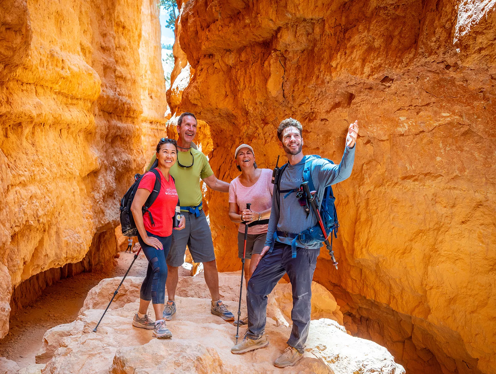 The National Park Service has many regulations on hiking. In Zion National Park they limit where you can hike when accompanied by your Backroads Trip Leaders. Your leaders will provide pre-walk briefings, maps and directions so you can explore certain trails on your own. In Bryce Canyon National Park, your leaders can hike with you but can’t act as “interpretive guides.” Throughout the trip, your leaders will give an orientation to the area’s flora, fauna and terrain before your hikes. Thank you for helping us cooperate with each park’s regulations.