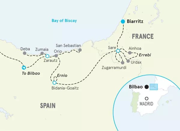 French Pyrenees to Basque Country Walking and Hiking Tour map
