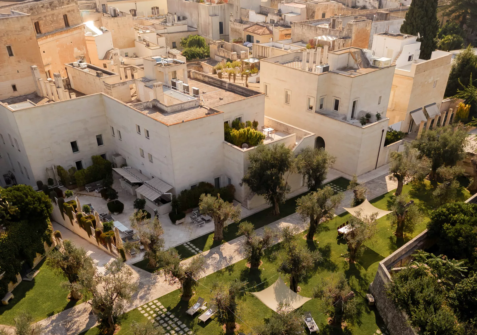 Positioned in the heart of the historic center of town, this ancient masseria is adorned with sculptures and elegant interior design, set in a centuries-old olive grove. (pool)